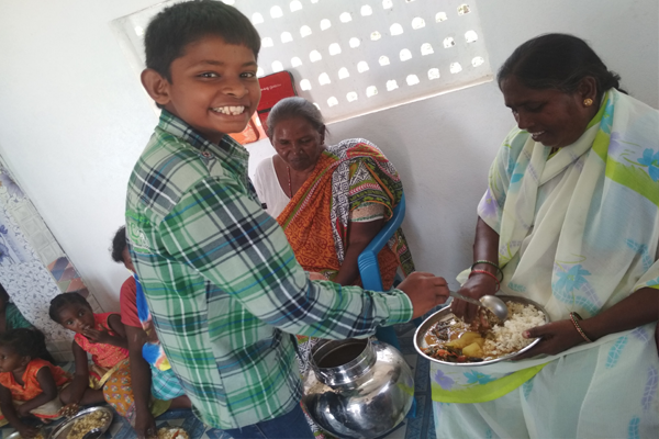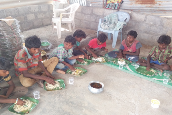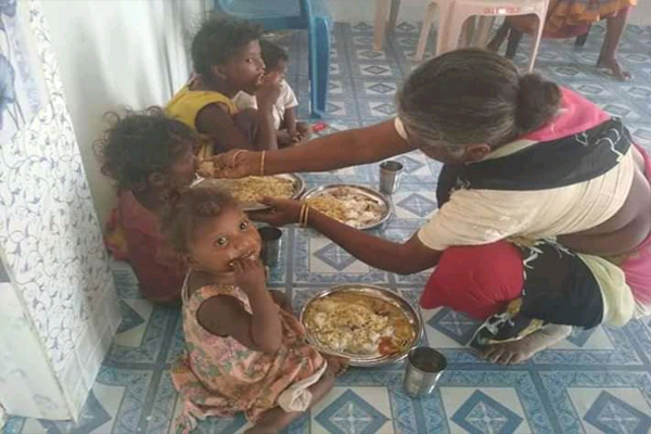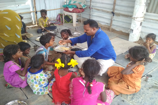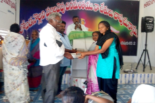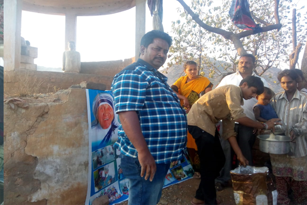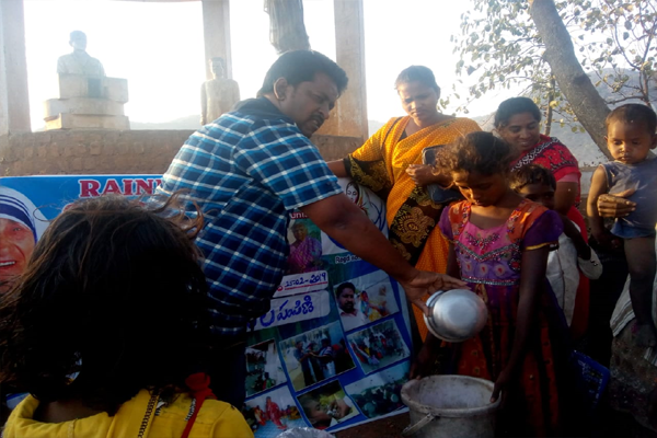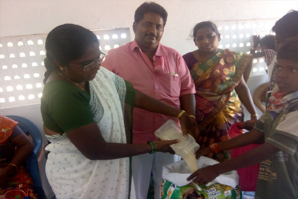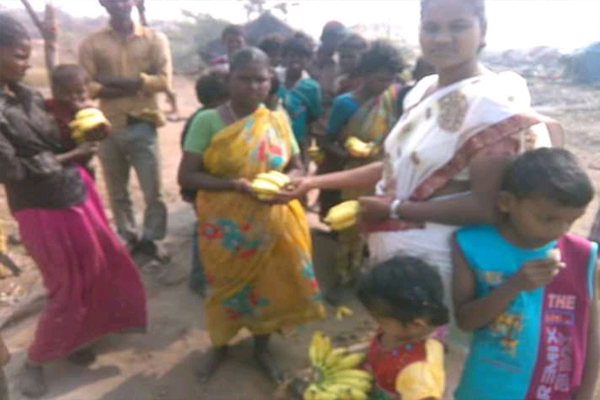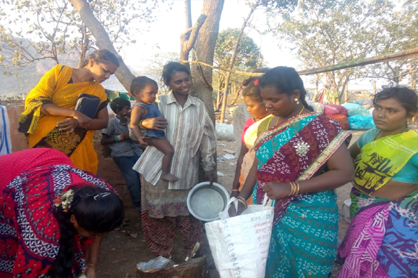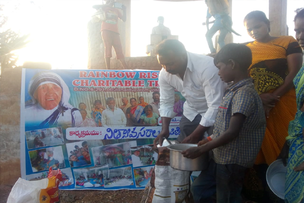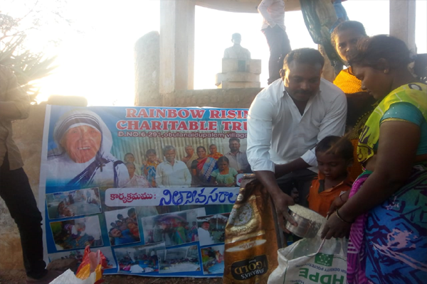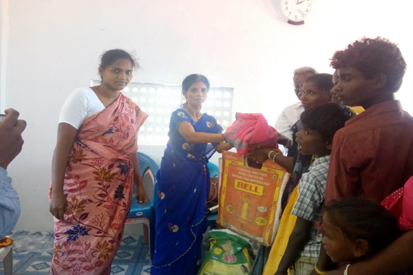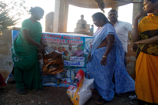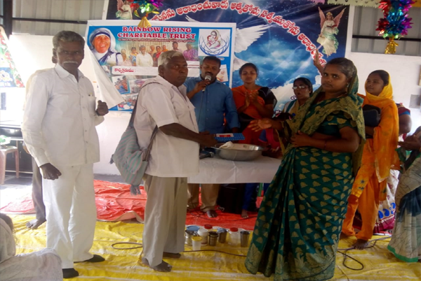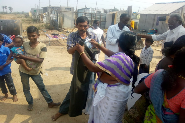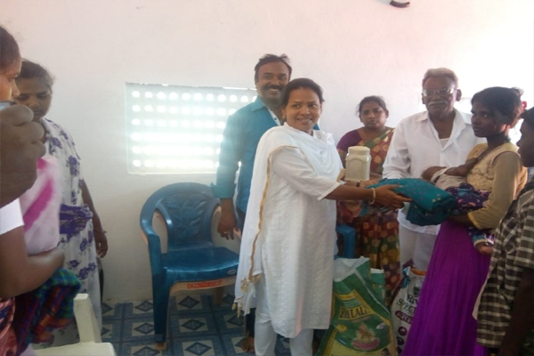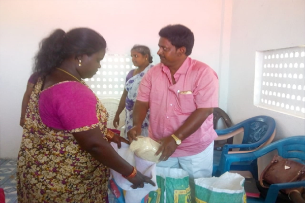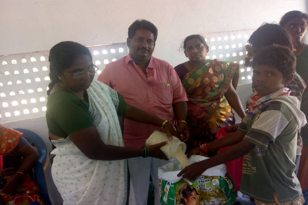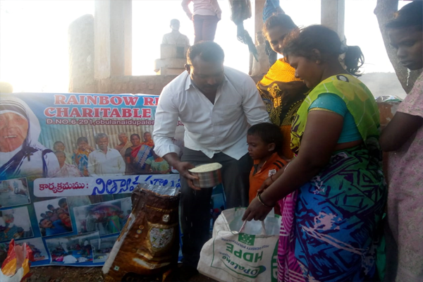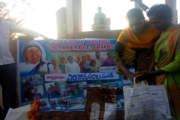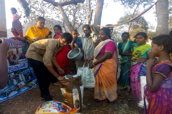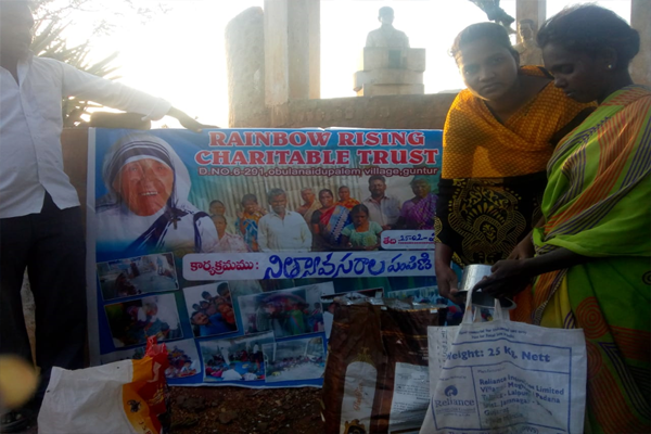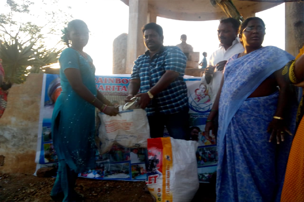 Distributing rice and clothes in poor areas